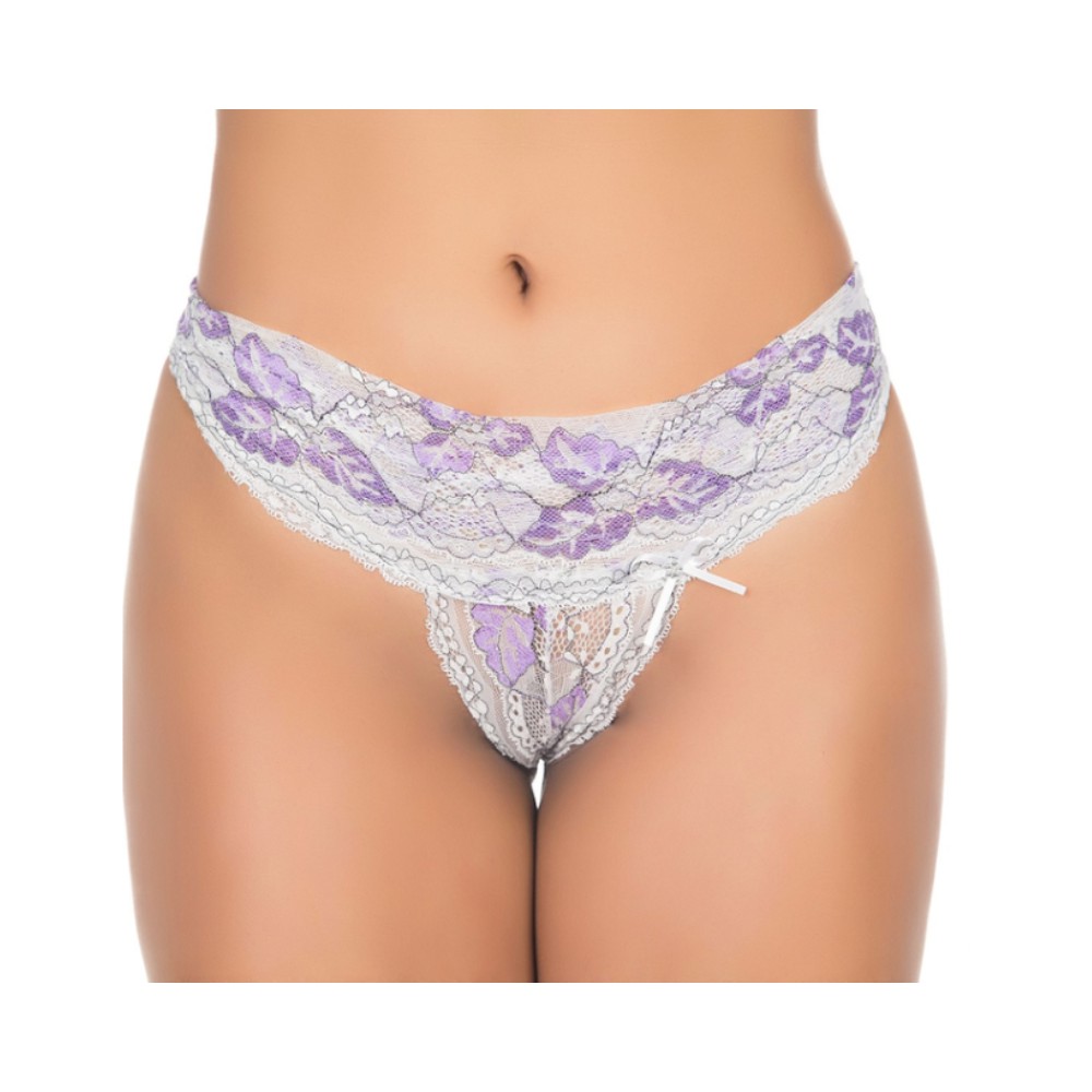 Calcinha Fio Dental Renda Dupla Branca Lilás Pimenta Sexy