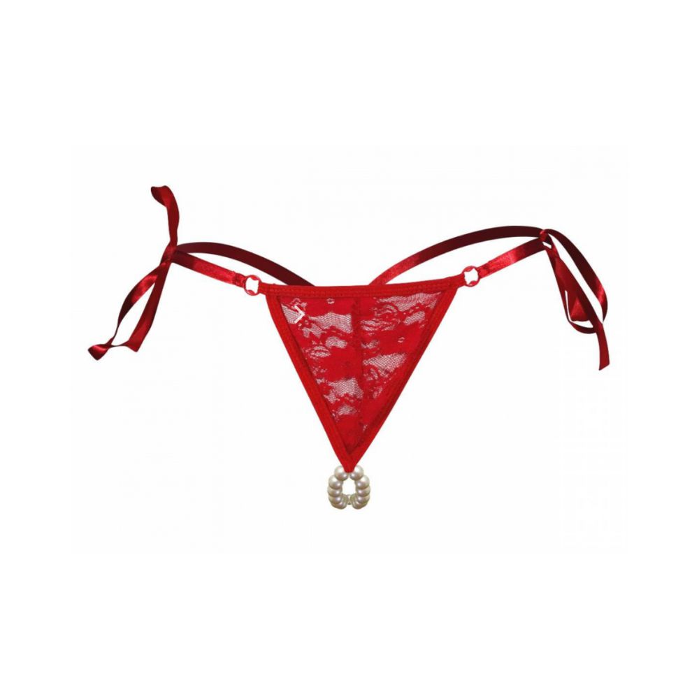 Calcinha Tailandesa é composta de renda delicada com abertura e fio de pérolas na parte debaixo.