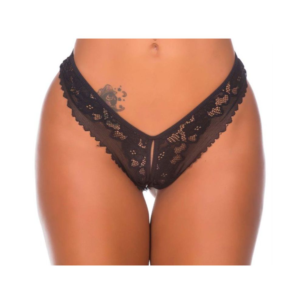 A calcinha tanga fio dental Pimenta Sexy é confeccionada em renda, com tiras em drappy na parte de trás deixando a lingerie bem delicada.