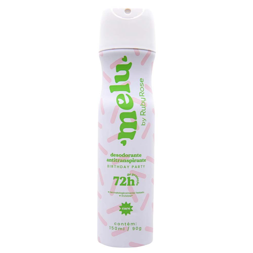 Desodorante Antitranspirante Birthday Party Melu Ruby Rose RR-6801-5: Celebre Cada Dia com Frescor e Alegria. Transforme sua rotina diária em uma celebração com o Desodorante Antitranspirante Birthday Party Melu Ruby Rose RR-6801-5. Criado pela Ruby Rose, sinônimo de excelência em beleza, este desodorante traz a vibração e o entusiasmo das festas para seu cuidado pessoal diário.