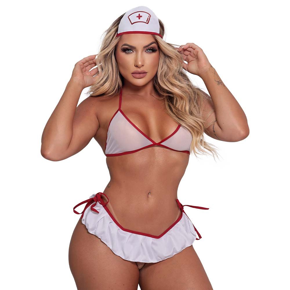 Design Cativante: Detalhes autênticos que incorporam o charme e a sensualidade de uma enfermeira sexy.
