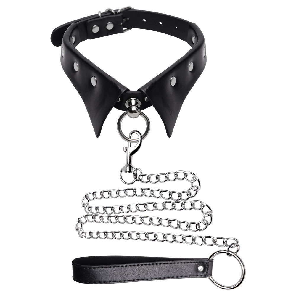 Design Elegante: Coleira com guia em corrente metálica, proporcionando um visual sofisticado e provocante.