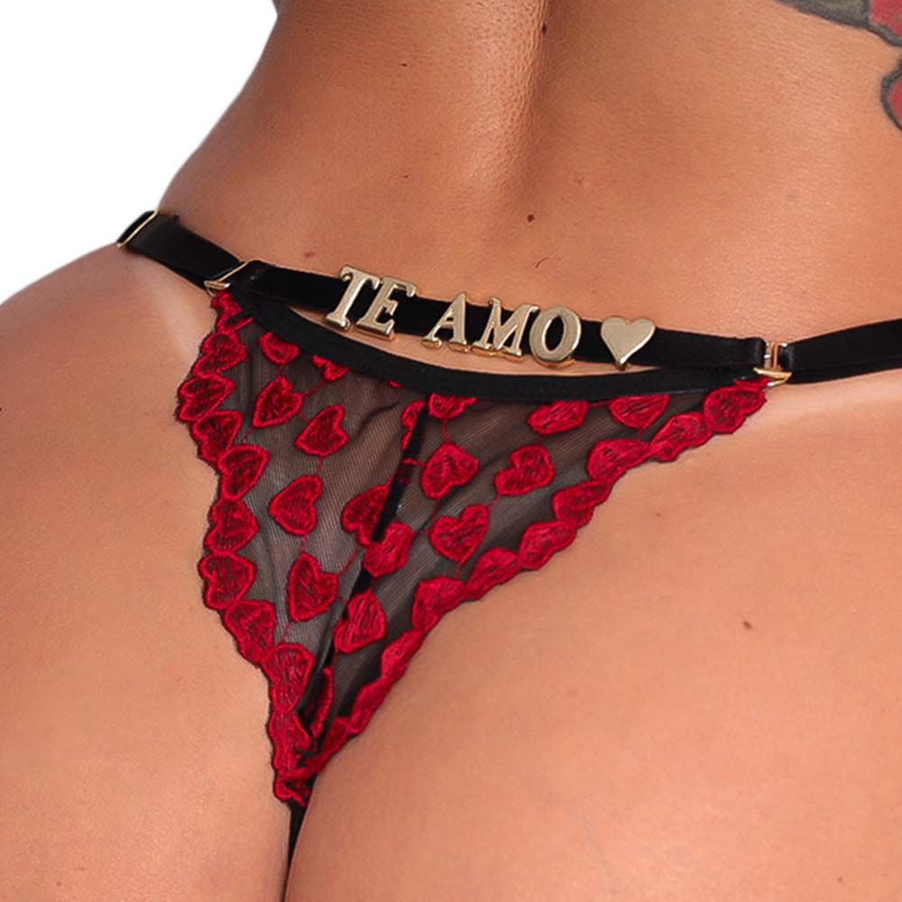 Calcinha Fio Dental Love Personalizável da Tallyta Moda Apimentada. A Calcinha Fio Dental Love Personalizável da Tallyta Moda Apimentada é a peça íntima perfeita para adicionar um toque de personalidade e sensualidade aos seus momentos especiais. Produzida em tulle bordado, esta calcinha permite a personalização com frases ou letras no bumbum, tornando-a única e exclusiva. Ideal para quem deseja expressar seus sentimentos de forma criativa e elegante!
