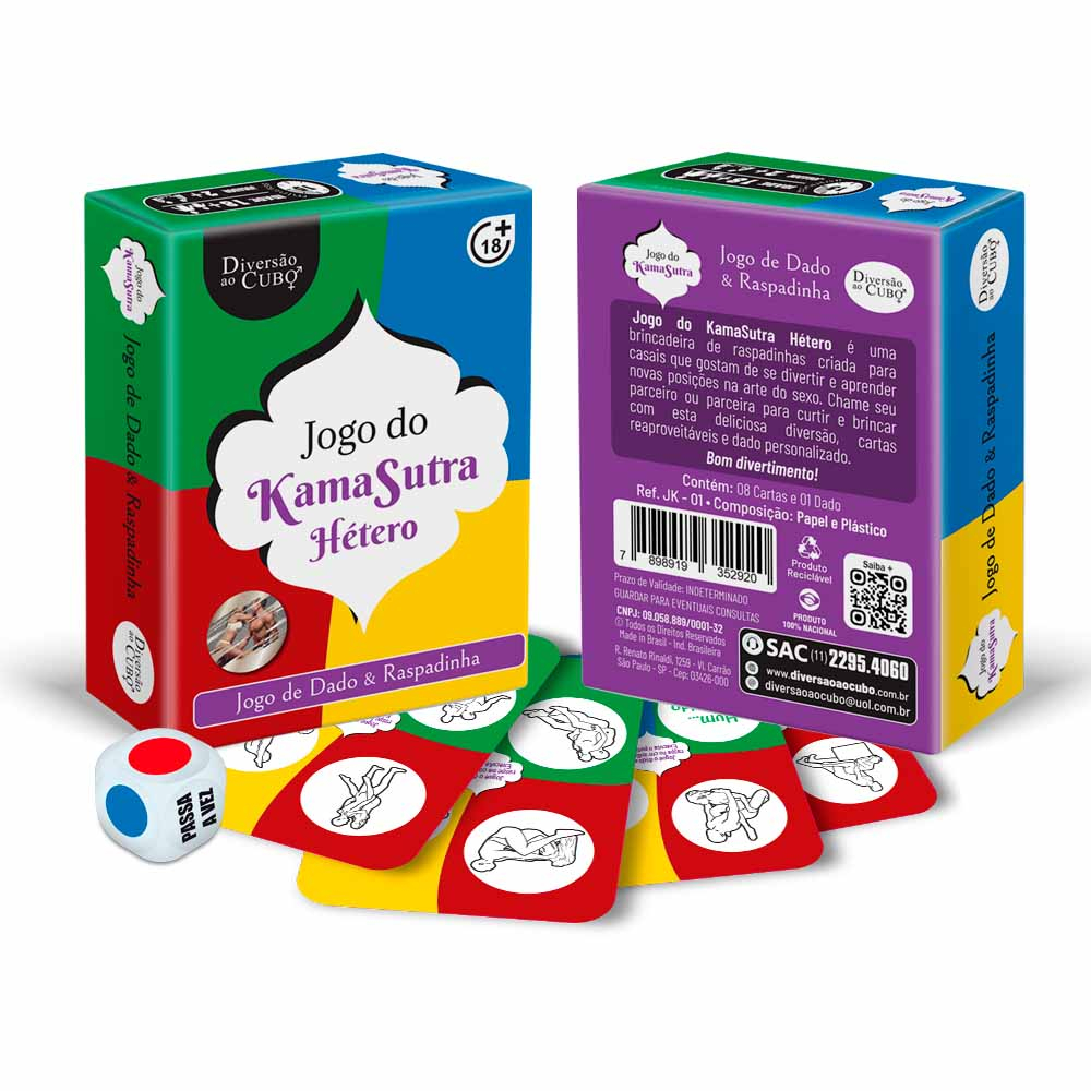 Jogo do KamaSutra Hétero - Diversão Ao Cubo. Descubra novas formas de prazer e intimidade com o Jogo do KamaSutra Hétero da Diversão Ao Cubo. Este jogo de raspadinhas foi criado especialmente para casais que desejam apimentar sua relação, explorando novas posições e aprendendo juntos a arte do sexo de uma maneira divertida e envolvente. Com cartas reaproveitáveis e um dado personalizado, este jogo oferece uma experiência única e emocionante para você e seu parceiro ou parceira!