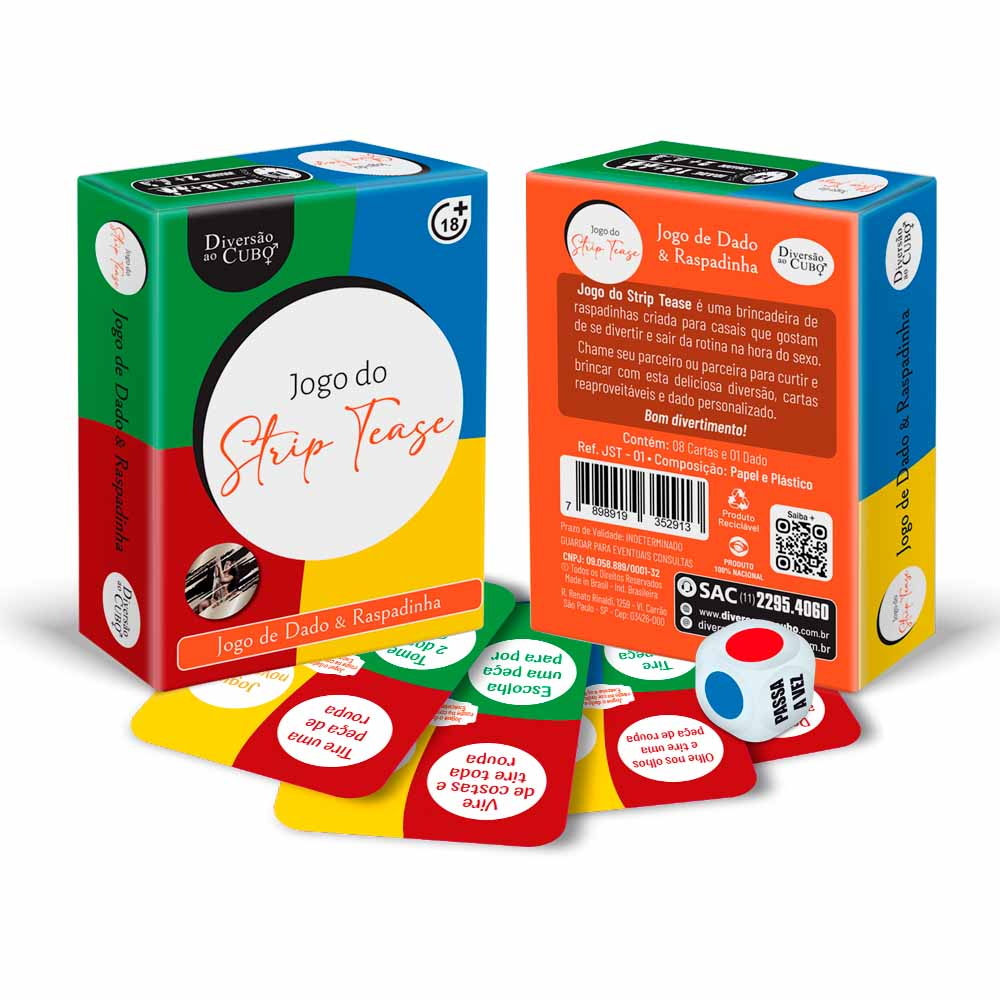Jogo Raspadinha Strip Tease - Diversão Ao Cubo. Apimente sua relação e saia da rotina com o Jogo Raspadinha Strip Tease da Diversão Ao Cubo. Este jogo de raspadinhas foi criado especialmente para casais que desejam adicionar mais diversão e sensualidade aos seus momentos íntimos. Com cartas reaproveitáveis e um dado personalizado, este jogo proporciona uma experiência envolvente e cheia de surpresas para você e seu parceiro ou parceira!