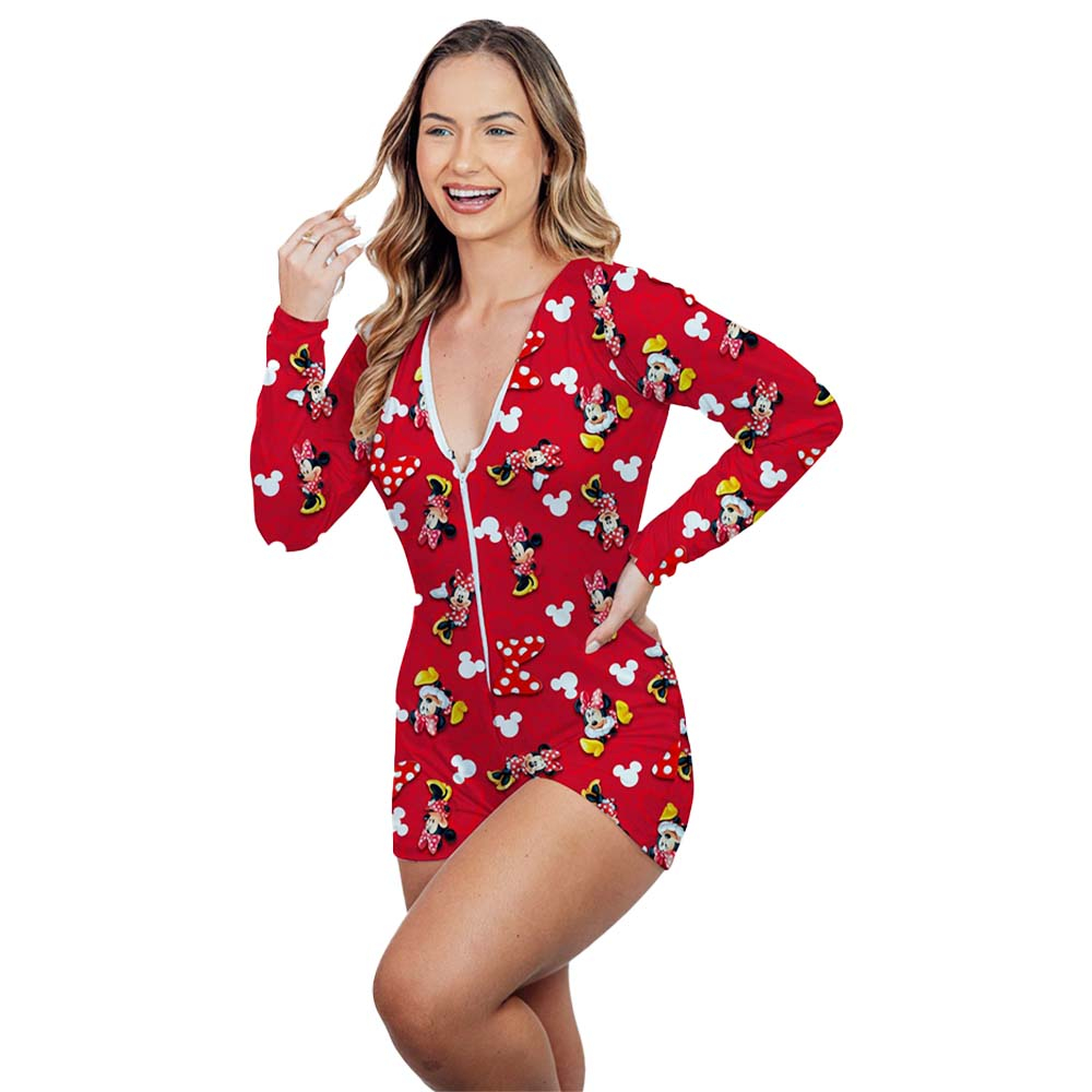Pijama Ana Júlia Estampa Minnie Versão 3 Modelo Macaquinho - Marca Gota de Sonho. Encante suas noites com o adorável pijama Ana Júlia da Gota de Sonho, agora com a terceira versão da estampa da Minnie. Este modelo Macaquinho é perfeito para fãs da icônica personagem da Disney que procuram combinar estilo e conforto em suas roupas de dormir!