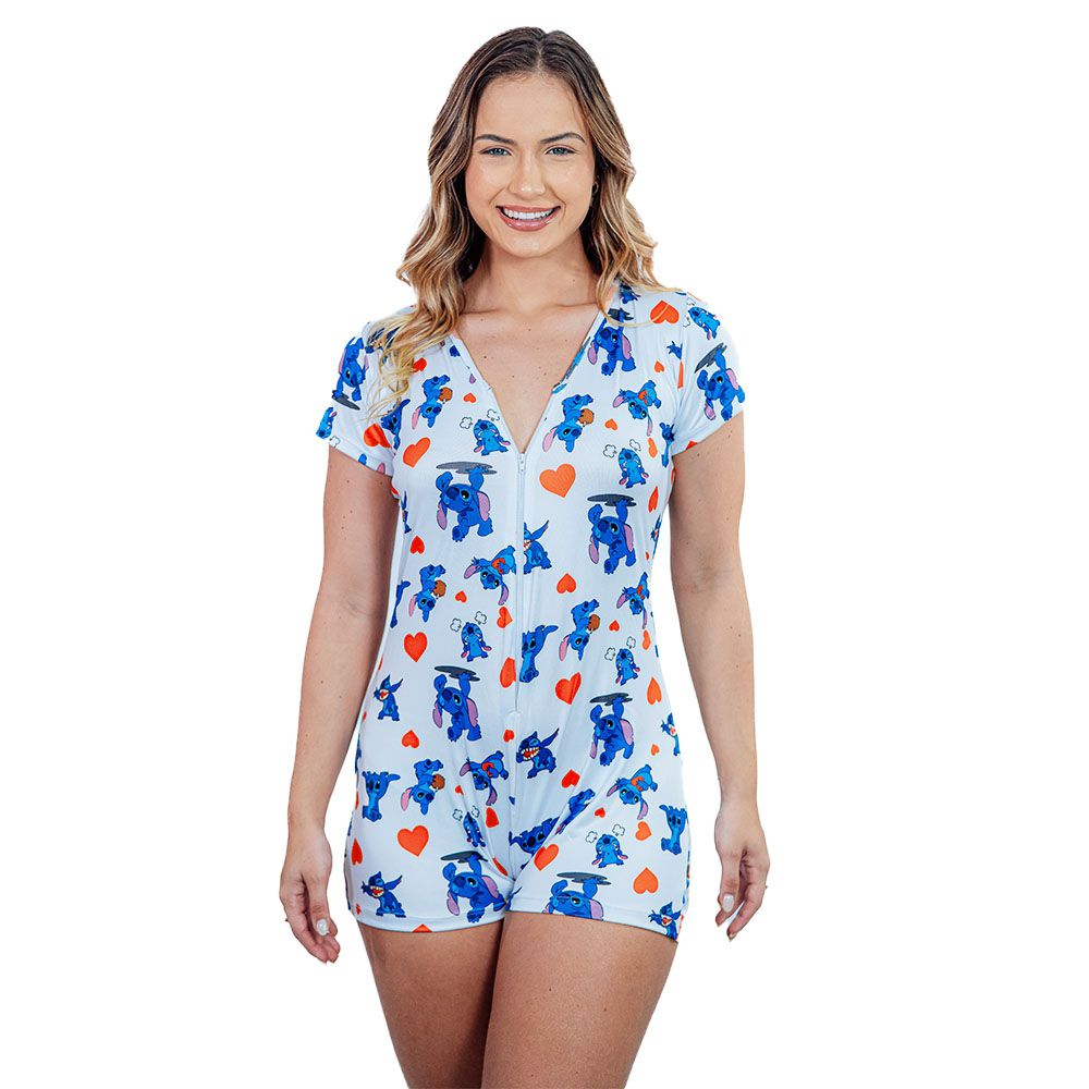 Pijama Juliana Estampa Stitch Modelo Macaquinho - Marca Gota de Sonho. Adicione um toque de diversão e aventura às suas noites com o pijama Juliana, delicadamente confeccionado pela Gota de Sonho. Este atraente modelo Macaquinho vem com uma estampa inspirada no adorado personagem Stitch, ideal para os fãs que procuram conforto e estilo em uma peça única!