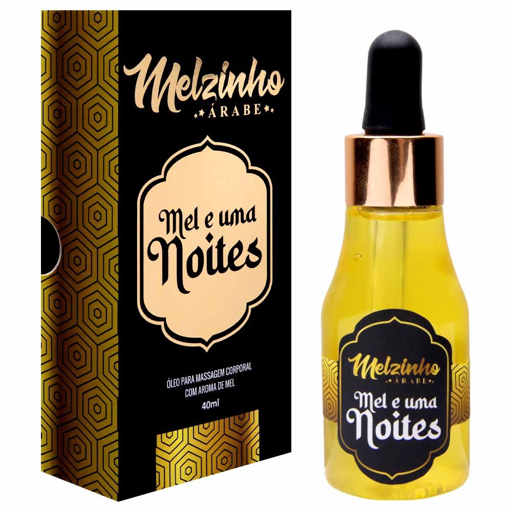 Melzinho Árabe Mel e Uma Noites da Chillies. O Melzinho Árabe é mais do que um óleo siliconado com um aroma delicioso de mel; é o convite perfeito para noites repletas de paixão e intensidade. Desenvolvido para proporcionar massagens eróticas inesquecíveis, esse cosmético sedutor desliza suavemente pelo corpo, envolvendo os casais em um clima de prazer e excitação. Além de suas propriedades para as preliminares, o óleo também funciona como lubrificante, garantindo uma fixação duradoura, sendo à prova d'água e apresentando uma embalagem prática e higiênica, com dosador de gotas para evitar contato direto com as regiões íntimas!