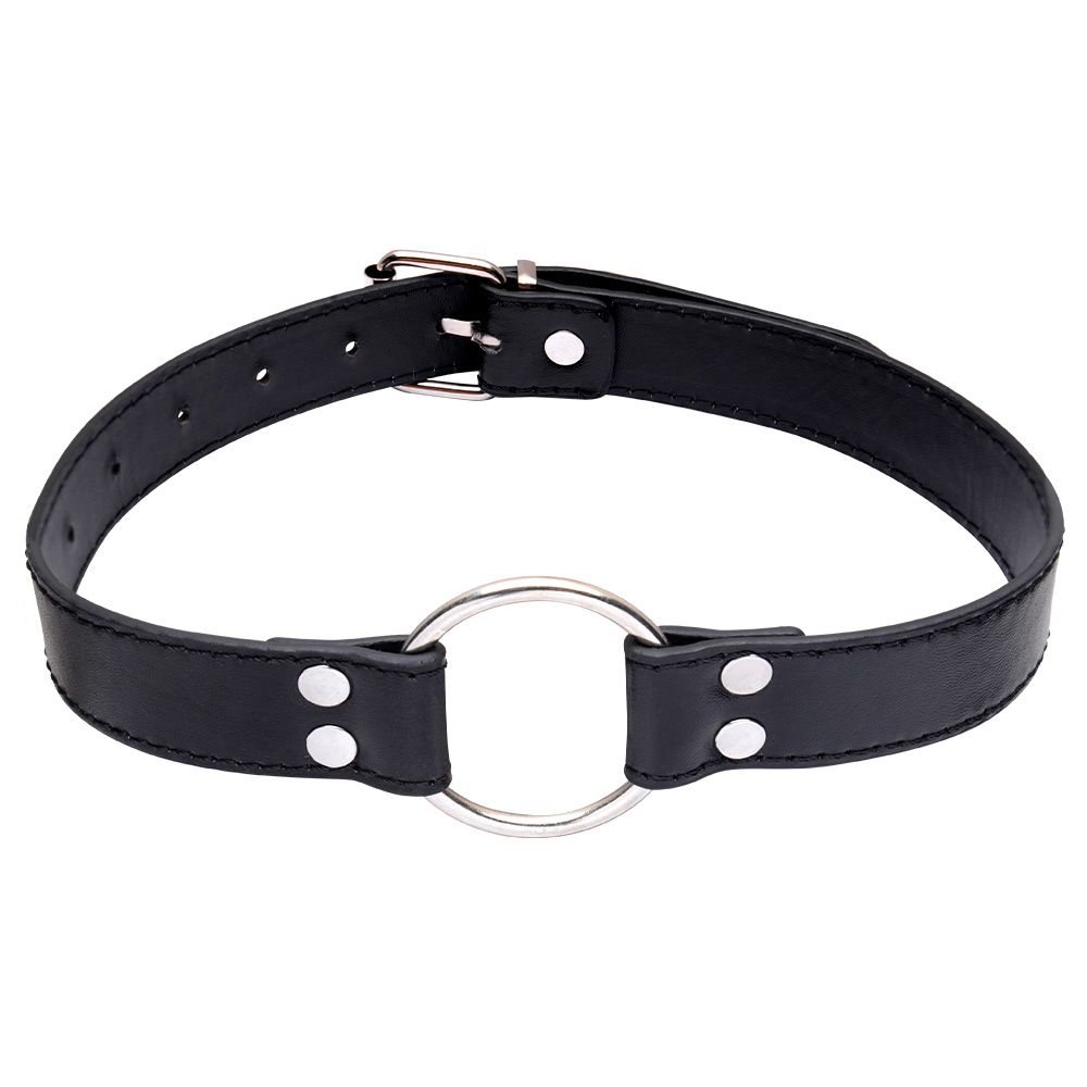 Estilo e Conforto: Mordaça bondage em preto com couro sintético de alta qualidade.