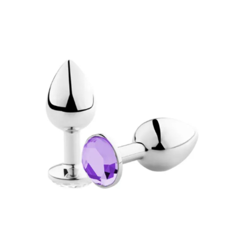 Plug anal em alumínio médio, possui em sua base uma pedra colorida lapidada como uma jóia. Acompanha um saquinho em tecido totalmente discreto.