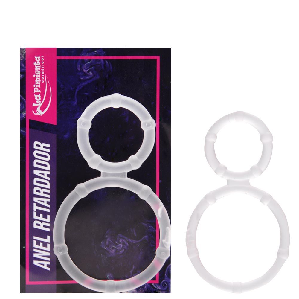 Anel Peniano Duplo em silicone macio e flexível, com ótima elasticidade. Possui a dupla função de prolongar, retardar a ejaculação e no estímulo do clítoris durante a penetração. Compatível com qualquer tamanho de pênis. Deixe o seu momento íntimo mais duradouro e intenso, com mais horas de prazer! Modo de uso: Esticar e encaixar o anel até na base do pênis ereto Recomendações e cuidados: Aconselha-se o uso de lubrificante à base d'água, isso faz que aumente a vida útil do produto