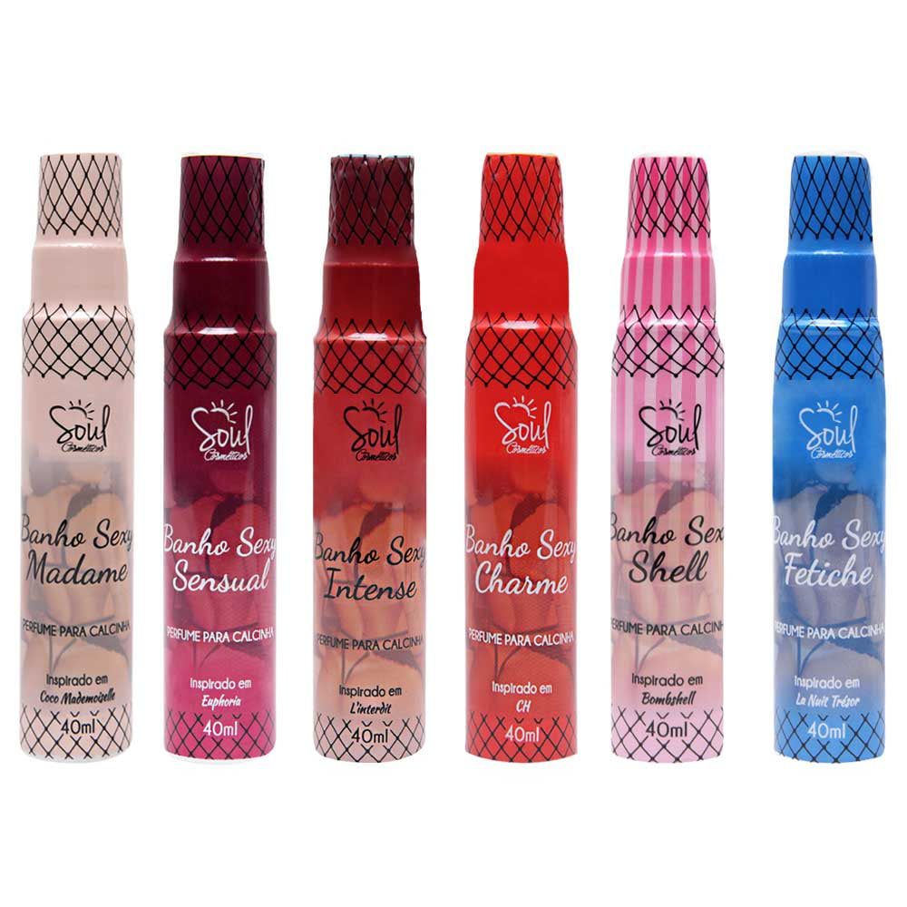 Banho Sexy Perfume De Calcinha 40ml Soul é um perfume íntimo desenvolvido principalmente para fazer com que fique mais cativante, é para ser aplicado em lingeries, as fragrâncias foram inspiradas em clássicos da perfumaria mundial e existem seis aromas para escolher.