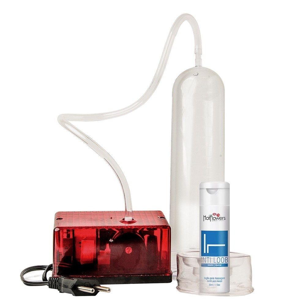 Bomba Peniana Elétrica 110 V Hot Flowers aparelho elétrico para desenvolvimento peniano. Composto Por: 01 Tubo de 21 x 6cm 01 Bomba de vácuo elétrica 01 Tubo em látex para conexão 01 Anel vedador em látex Observações: O uso regular (10 minutos diários) contribui para o aumento do comprimento e espessura. Aconselha-se o uso de lubrificantes na utilização da bomba
