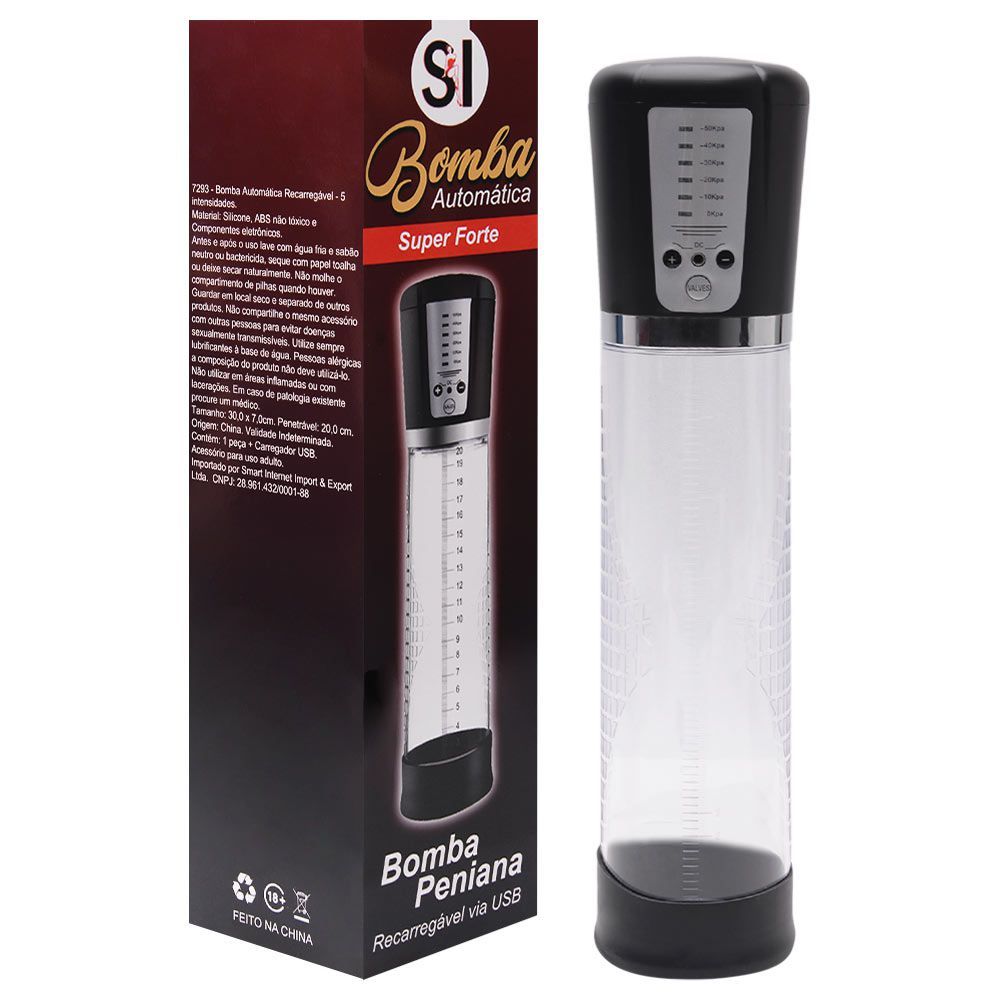 Bomba Peniana Automática Recarregável Super Forte, possui anel em silicone. Ótima para tratar a ejaculação precoce, a impotência masculina e desenvolver o órgão masculino. Melhora a irrigação sanguínea do pênis proporcionando melhor ereção. 5 Modos de Intensidades! Modo de uso: Coloque o anel no tubo, coloque o pênis dentro do tubo e pressione rente a virilha para que o ar não saia. Aperte a bomba para começar a sucção. Use 10 minutos diário, caso sinta alguma fisgada ou dor é o momento de parar e só retomar o exercício no dia seguinte Material: ABS e Silicone Tipo de bateria: Recarregável via USB (acompanha cabo) Medidas: 30cm de comprimento, 7cm de espessura (medidas aproximadas) Higienização: Lavar com água e sabão neutro antes e após o uso, seque com papel toalha ou deixe secar naturalmente. Depois de seco guarde na embalagem original. Não compartilhar e não expor a temperatura superior a 50°C