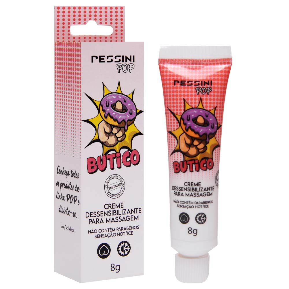 Dessensibilizante para sexo anal. Dar o butico não é mais problema, esse excitante promove um relaxamento para a região do ânus. Ao aplicar o produto, você terá um efeito geladinho e depois, de aquecimento. Seus ativos ajudam a dessensibilizar a região. Aguarde alguns minutos para o produto agir e seja feliz. Produto clinicamente de dermatologicamente testado. Contém: 8g Composição: Água, Álcool, Cetoestearilico, Etoxilado, 20EO, Clicerina, Miristato de Isopropila, Propilenoglicol, Coco amigo propis Betaina, Mentol diestearato de Polietilenoglicol 6000, Diazolidinil Ureia, EDTA, Dissodio, Tetra-Di-T-Butil Hidroxihidrocinamato de Pentaeritritila,Cloreto de sódio, Lodopropinil, Bulticarmato. Precauções: Manter fora do alcance de crianças. Manter em local seco e protegido dos raios solares. Qualquer sinal de irritação, suspenda o uso.