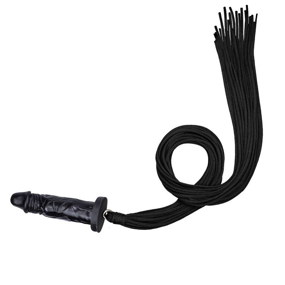 Chicote 20 tiras de corda com prótese na cor preta em material de nylon resistente e flexível para proporcionar toque com impacto confortável no corpo. Versátil, base de prótese peniana de 16,5 cm por 3,5 cm de diâmetro para que esta dupla função proporcione todo prazer e satisfação que deseja! Medidas: Medidas do Chicote 90cm Base do chicote em formato de prótese 16,5cm Diâmetro da prótese 3,5cm