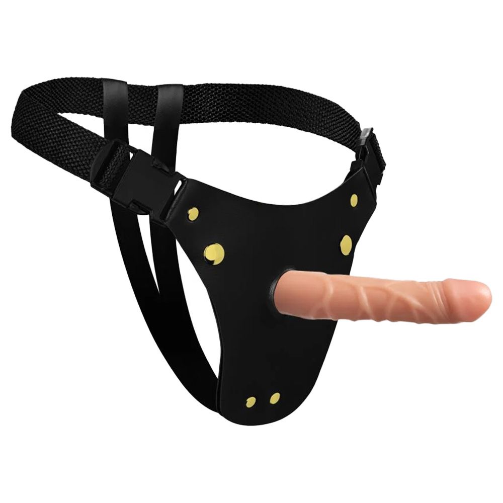 Cinta peniana ajustável feita em material reforçado, seus ajustes são feitos por fivelas que deixam a cinta ainda mais confortável e é perfeita para a mulher ativa ou para a inversão de papéis. Contém também uma prótese em formato de pênis realístico feito em silicone, glande definida e veias salientes. A prótese pode ser usada separada da cinta! Modo de uso: Fixe o pênis introduzindo a ventosa no furo da cinta. Ajuste firmemente a cinta ao seu corpo Medidas: Pênis mede de comprimento 18cm, com diâmetro de 4cm, sendo penetrável 17cm (medidas aproximadas) Material: Silicone e couro sintético Recomendações: Pênis: Use lubrificante a base de água. O uso do preservativo é opcional. Para uso pessoal, não aconselhamos compartilhar o uso com outras pessoas Cinta: Não dobre o couro vegano, não molhe diretamente, limpe com um pano umedecido, evite longa exposição solar, não seque o tecido em altas temperaturas e não use secador Higienização: Antes e após o uso faça sempre a higienização com água e sabão neutro ou com produto específico. Seque com papel toalha ou deixe secar naturalmente. Depois guarde-o na embalagem original, dessa forma ele estará protegido do calor e da luz excessiva