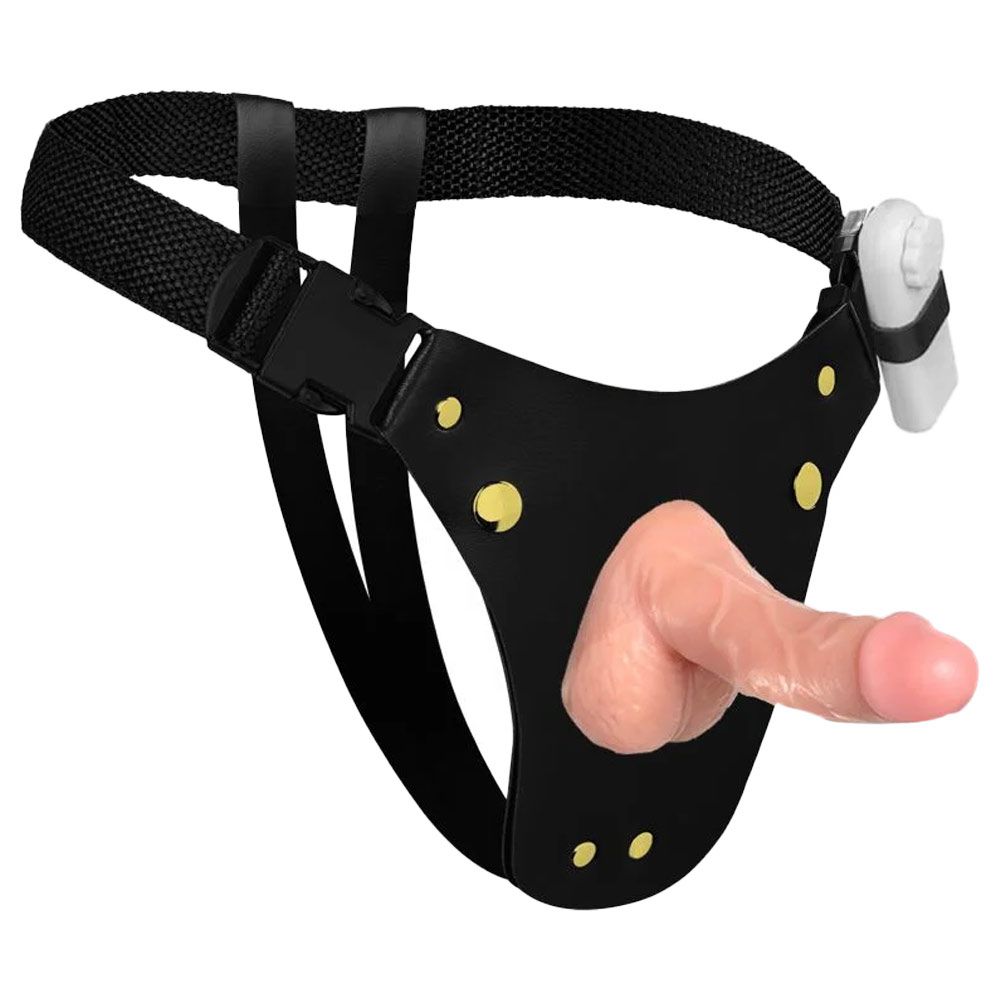Cinta peniana ajustável feita em material reforçado, seus ajustes são feitos por fivelas que deixam a cinta ainda mais confortável e é perfeita para a mulher ativa ou para a inversão de papéis. Contém também uma prótese em formato de pênis realístico feito em silicone, glande definida, veias salientes, escroto e ventosa para ser fixado em superfícies não porosas, possui vibrador com controle a fio multivelocidades. A prótese vibradora pode ser usada separada da cinta!