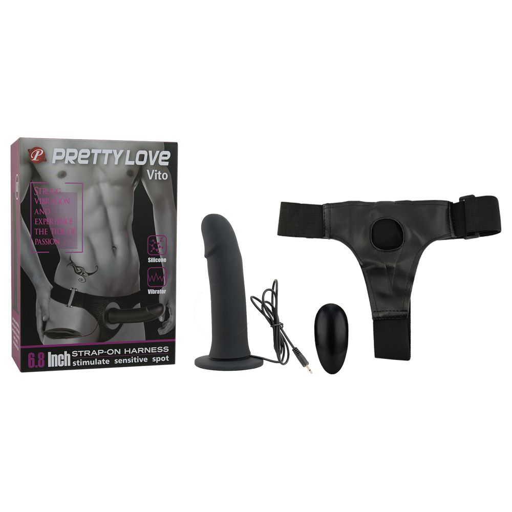 Pretty Love Vito Harness Strap On, cinta com prótese e vibrador multivelocidades, material de alta durabilidade! Modo de uso: Utilize lubrificante a base de água Baterias: Utiliza 03 pilhas AA (não inclusas) no controle remoto com fio Material: Silicone Medidas: Prótese mede 14,5cm de comprimento por até 4cm de largura, cinto veste do P ao GG (medidas e peso aproximados) Referência Pretty Love BW-022055
