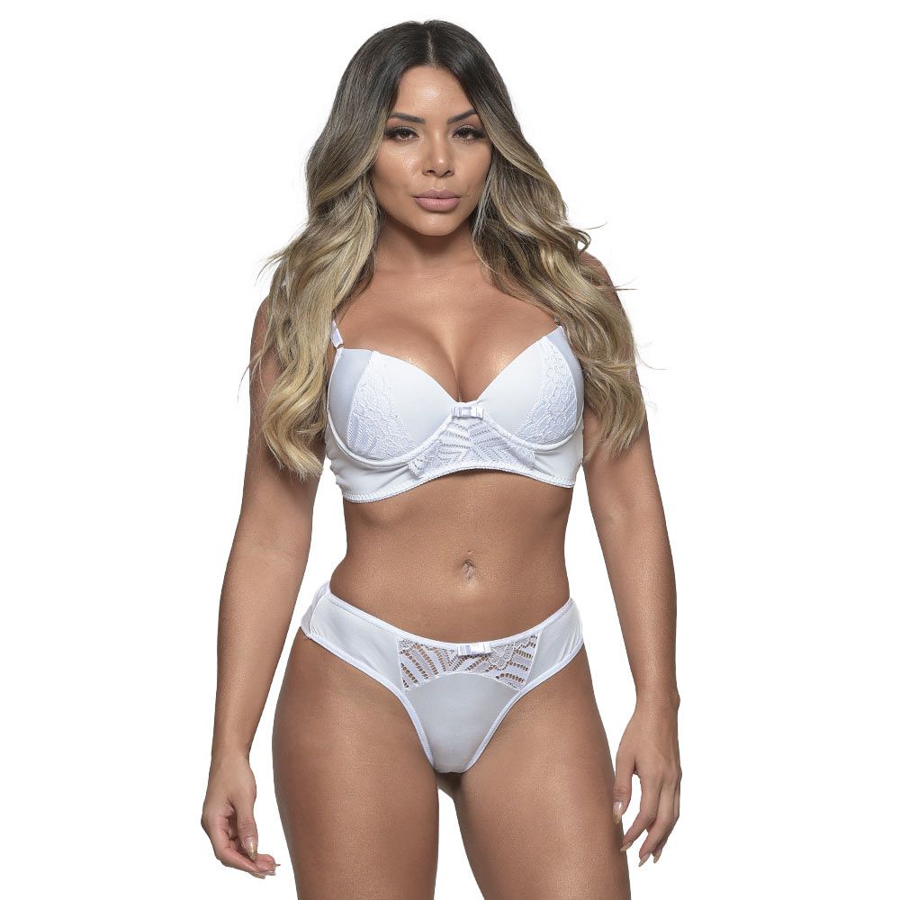 Apresentando uma mistura fina de microfibra e renda, este conjunto de lingerie une o conforto da microfibra com a beleza e delicadeza da renda. O sutiã 1/2 taça possui detalhes em renda no bojo, oferecendo um visual elegante e charmoso. A calcinha fio dental complementa o conjunto com um tecido duplo no bumbum, proporcionando mais conforto e segurança ao usar.