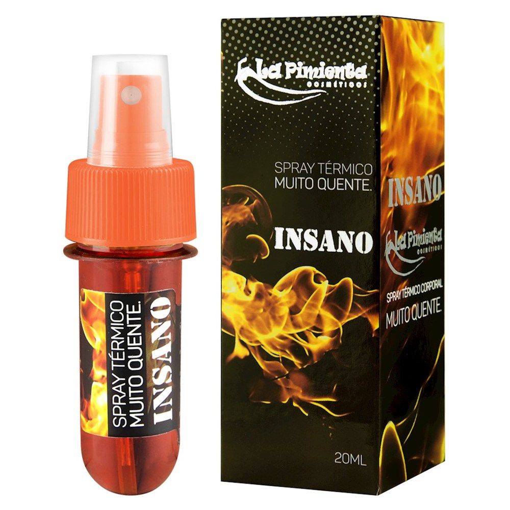 Óleo térmico em spray, desenvolvido para aumentar o desempenho sexual e despertar a libido. Proporciona sensações maravilhosas! * Fortes ondas de calor * Respiração ofegante * Batimento cardíaco acelerado * Pulsações apimentadas * Corpo anestesiado * O produto se espalha e penetra na pele, potencializando e prolongando o efeito * Fórmula exclusiva com ação instantânea Simplesmente INSANO! (Por ser um produto muito quente, não aconselhamos a fazer sexo oral, apesar de ter um sabor agradável.) Modo de uso: Aplicar na região íntima em doses progressivas e massagear suavemente. Ingredientes: Aqua, glycerin, phenoxyethanol, methylparaben, ethylparaben, propylparaben, butylparaben, isobutylparaben, vanillyl butyl ether, CI 16255 Recomendações: Manter fora do alcance de crianças, havendo irritação suspenda o uso. Em caso de contato com os olhos, lave com água em abundância Medidas: 4,5 x 12cm. Contém 20ml