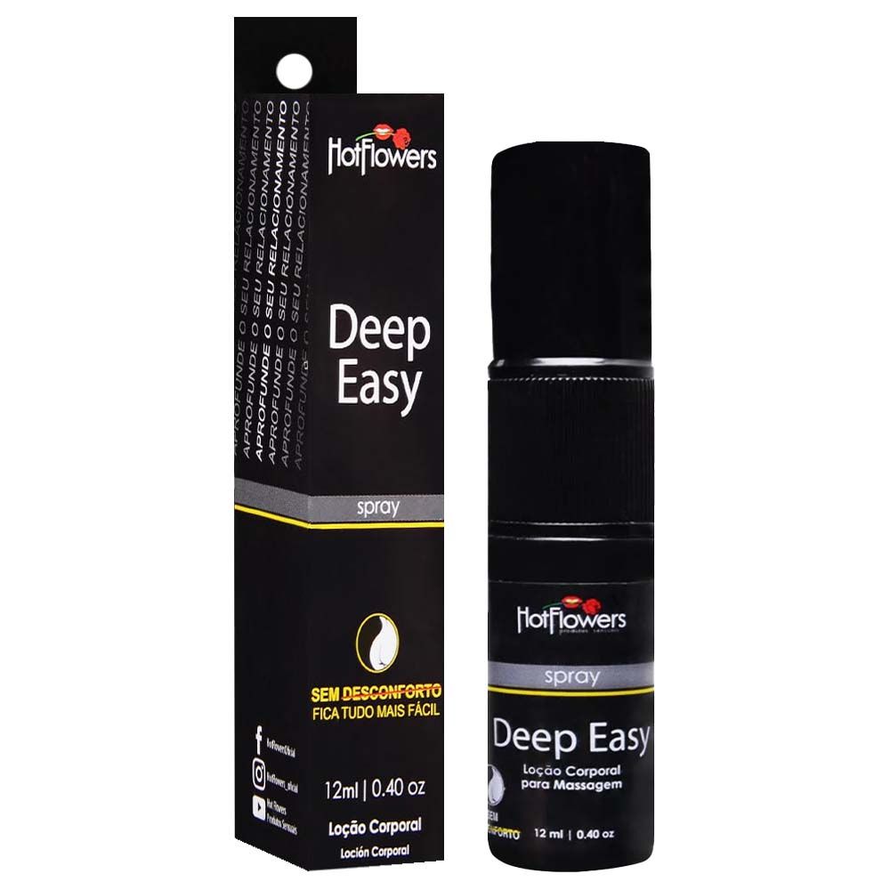Deep Easy Anestésico Spray. Anestésico anal! Nova fórmula, experimente e pratique o desejo de uma nova experiência sem medo e sem dor. Permite uma relação mais profunda e sem desconforto. Contém: 12ml (sensação anestésico)