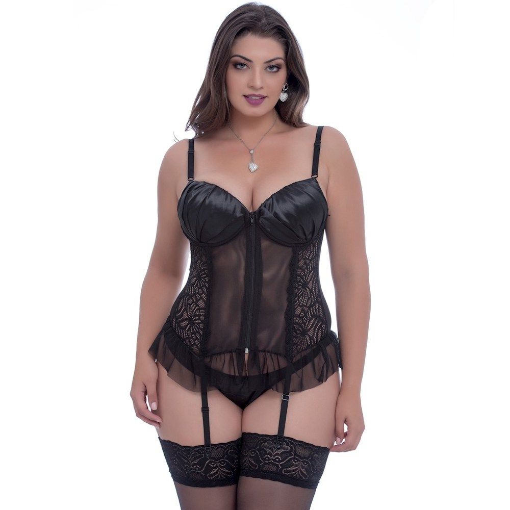 Espartilho Plus Size Bojo Cetim Com Tule E Renda Macler
