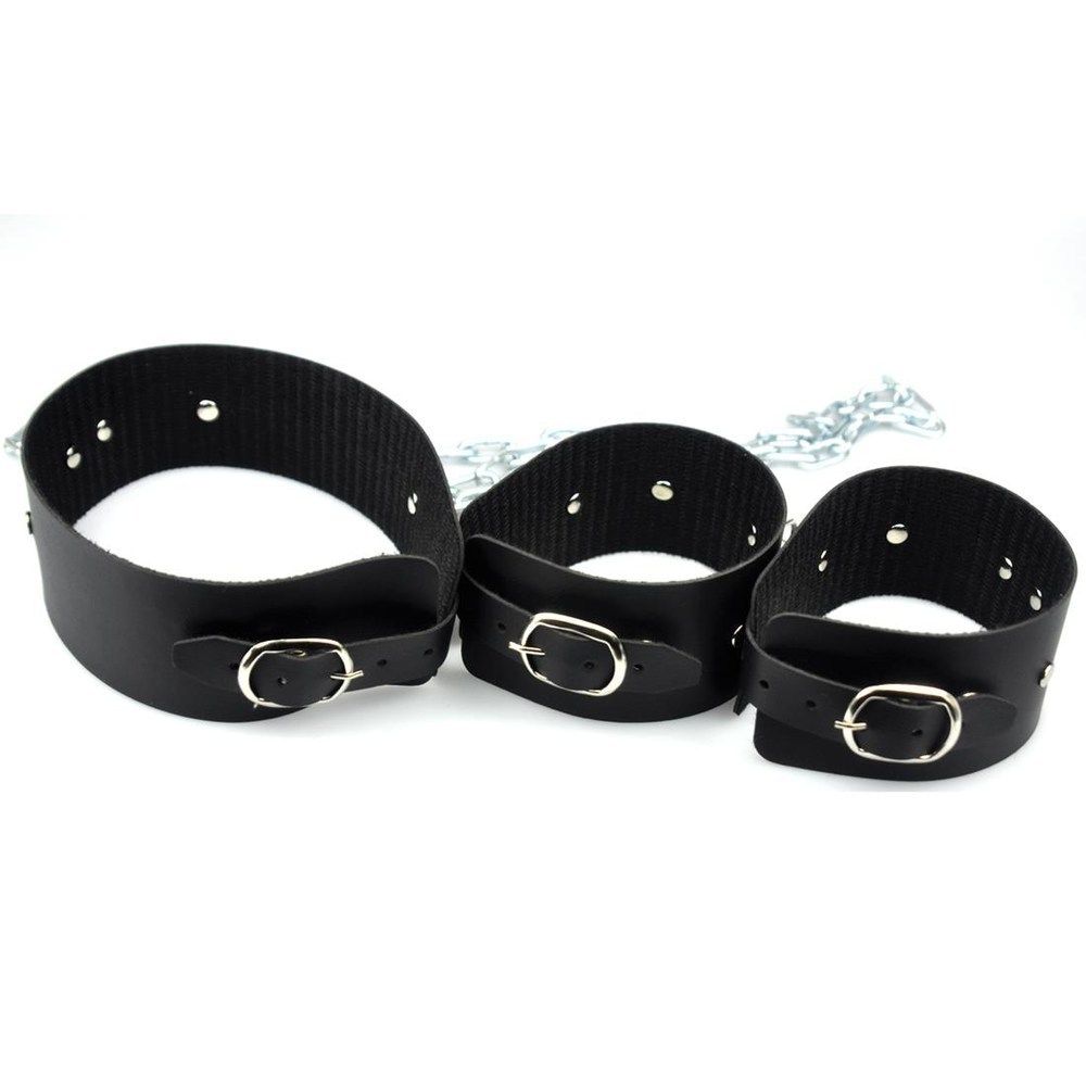 Kit Coleira E Tornozeleiras Com Corrente 1,2m Dominatrixxx