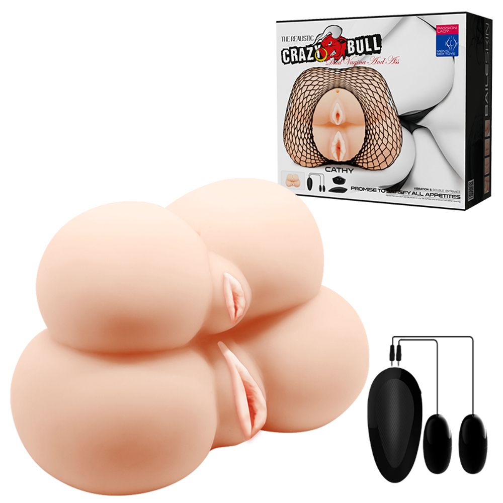 Crazy Bull Bunda Dupla Masturbadora 2 Vaginas e Ânus Texturizados da Baile, com 3 orifícios penetráveis, possui textura interna levando muito mais prazer no momento da penetração. Todo confeccionado em CyberSkin assemelha-se muito à pele humana, deixando sua experiência próxima à realidade. Não deixe de experimentar. Acompanha vibrador duplo bullet com multi-velocidade. Aproveite! Modo de uso: Lubrificar antes da penetração Material: TPR Tipo de bateria: Utiliza 2 pilhas AA (não inclusas) Medidas: 20cm de comprimento e 18cm de largura, por 13cm de altura (medidas aproximadas) Higienzação: Lavar com água e sabão neutro antes e após o uso, seque com papel toalha ou deixe secar naturalmente. Depois de seco guarde seu vibrador na embalagem original. Não compartilhar e não expor a temperatura superior a 50°C