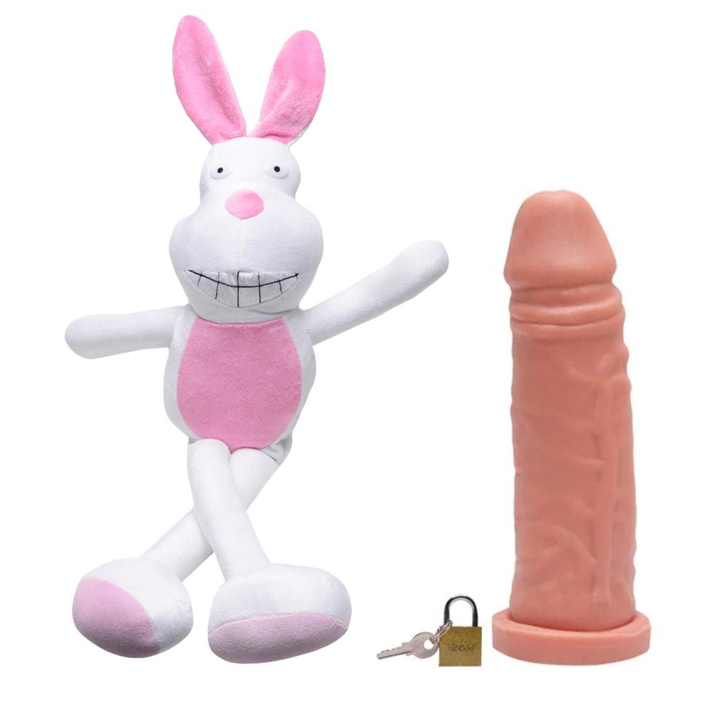 Pelúcia Coelho com Prótese Universo da Pelúcia feito em pelúcia macia com zíper e cadeado com chaves para guardar próteses e outros acessórios. Medidas do mascote 24x18 cm aproximadamente . OBS: Acompanha um pênis feito em látex atóxico, macio e flexível em tamanhos diferenciados. Algumas das embalagens podem sofrer alterações pelo fornecedor, sem haver tempo hábil para ser atualizado em nosso site, porém garantimos que as características do produto (quantidade, peso, matéria prima e funções) não serão alteradas.