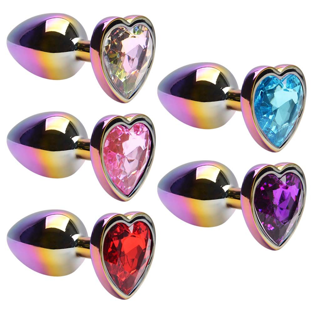 Plug Anal aço colorido formato coração, este é um acessório erótico diferente que serve como estimulador anal em brincadeiras fetichistas, principalmente em jogos de dominação e submissão. É ideal para dilatação anal, pois sua espessura é diferente em todo seu comprimento! Medidas aproximadas: 6,9 x 3,2cm, tamanho P Peso: 56g Material: Aço com pintura colorida Cuidados: Antes e após o uso, lavar com água fria e sabonete bactericida. Seque com papel toalha descartável ou deixar secar natural
