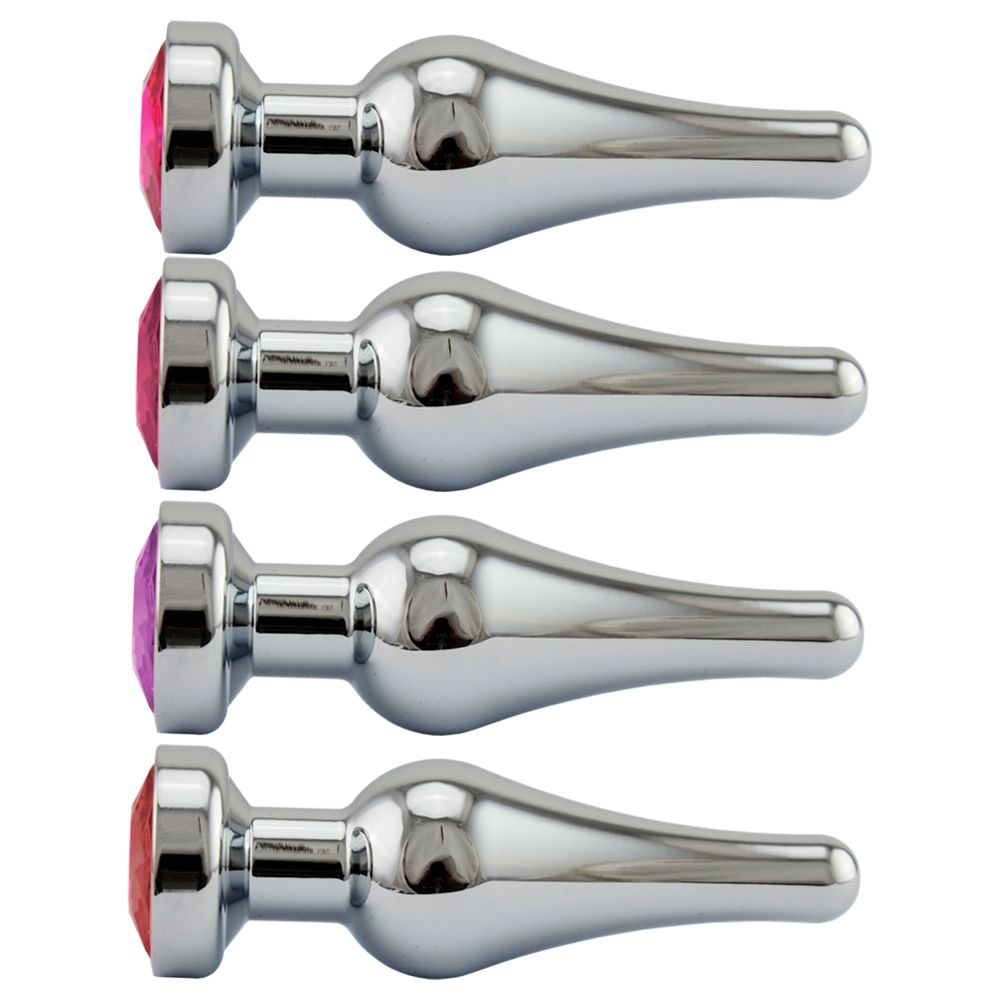Plug anal em aço inoxidável com formato cônico, com detalhe de joia em sua base, o produto ideal para penetrações anais pois te fornece muito prazer, conforto e segurança. Aproveite e adquira já o seu! Peso aproximado 90g. Modo de uso: Lubrificar antes da penetração Material: Aço com Pedra Sintética Medidas: 10 cm de comprimento, 3 cm de espessura (medidas aproximadas).