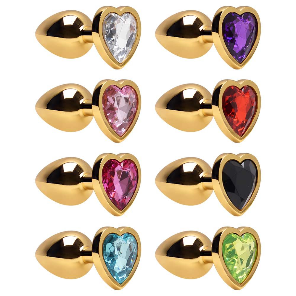 Plug Anal, tamanho P, cônico com formato coração na base em metal dourado, este é um acessório erótico diferente que serve como estimulador anal em brincadeiras fetichistas, principalmente em jogos de dominação e submissão. É ideal para dilatação anal, pois sua espessura é diferente em todo seu comprimento! Modo de uso: Lubrificar antes da penetração Material: Metal Medidas: 7cm de comprimento total e 2,8cm de espessura ponto (medidas aproximadas) Higienização: Guarde na embalagem original. Não compartilhar e não expor a temperatura superior a 50°C