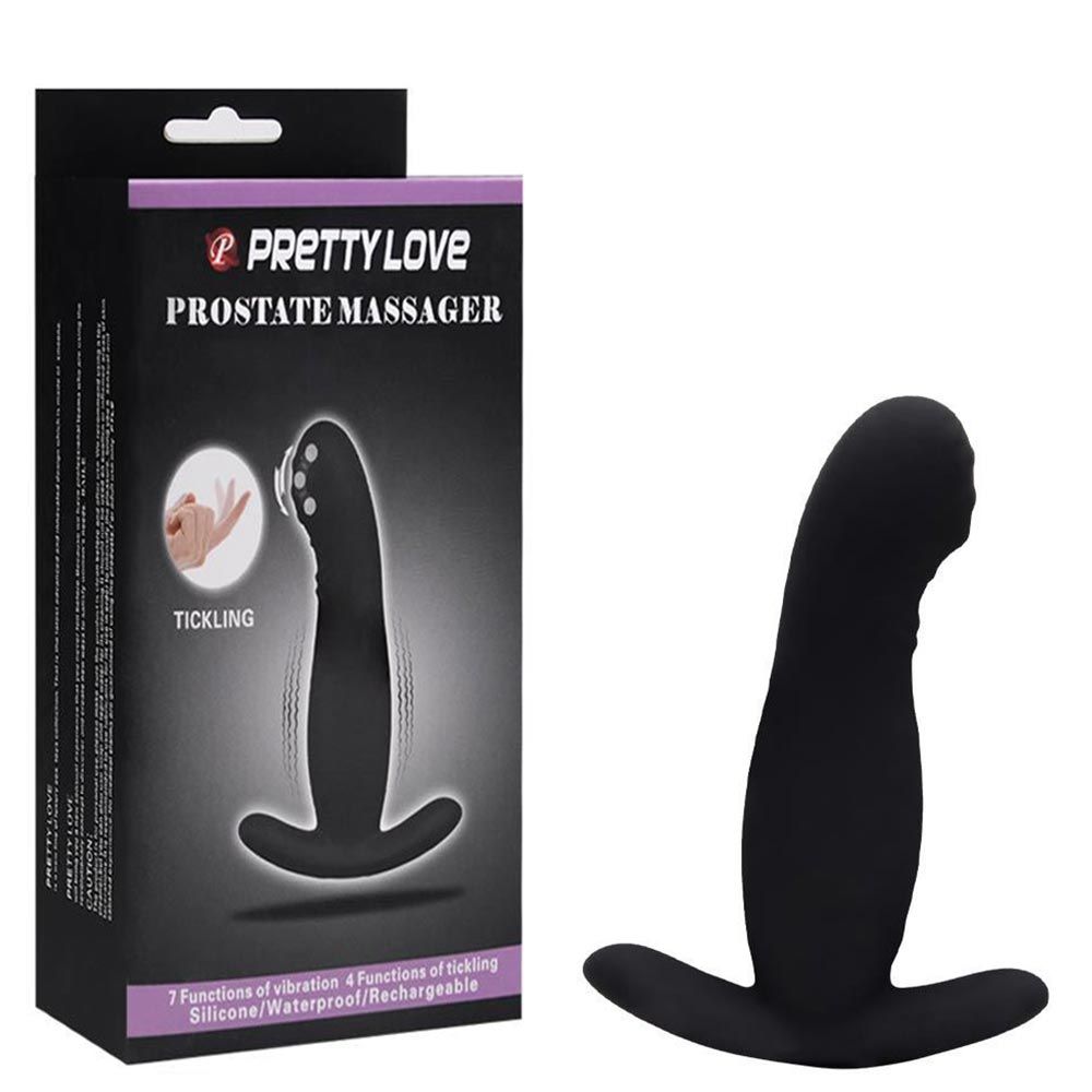 Massageador de próstata Pretty Love da Vipmix, recarregável com 7 modos de vibração e 4 modos de estimulação! Medidas Aproximadas: 12,7 x 3 x 6cm, sendo penetráveis 11,5cm Baterias: Utiliza: Cabo USB incluso Material: Silicone Cuidados: Antes e após o uso, lavar com água fria e sabonete bactericida. Seque com papel toalha descartável ou deixar secar natural