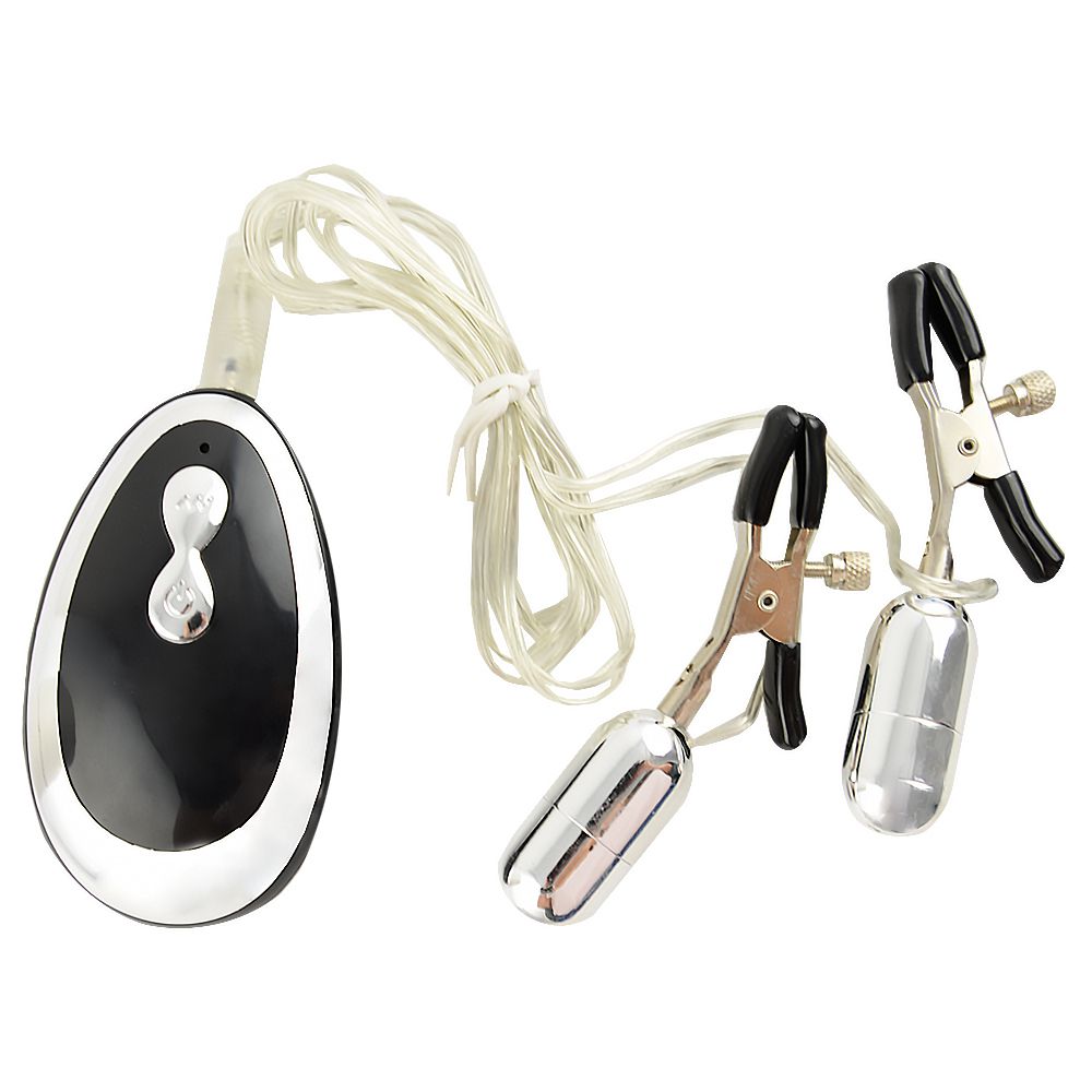 Prendedor de mamilos, estimulador, 20 modos de vibrações controladas por controle remoto com fio! Modo de uso: Possui trava e ajuste de aperto Bateria: Utiliza 02 pilhas AAA (não inclusas) Material: Silicone macio e plástico ABS.