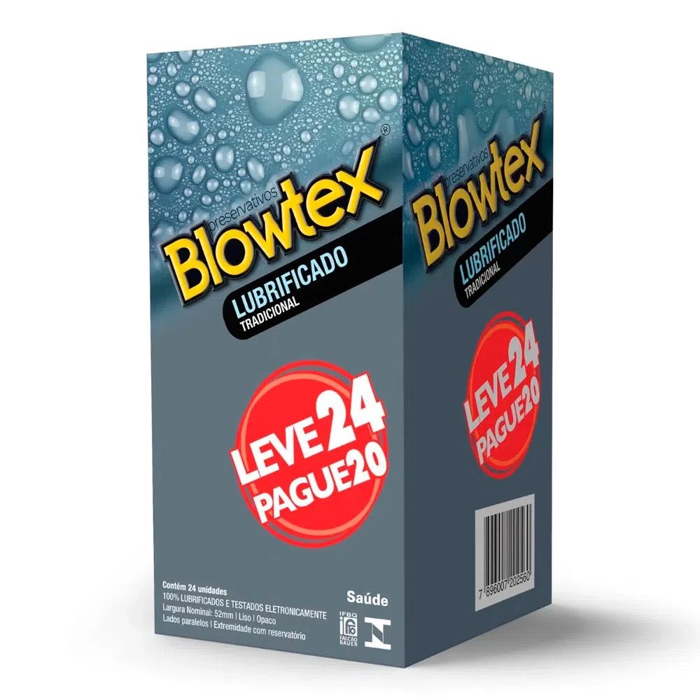 Este pacote contém 24 unidades do preservativo tradicional Blowtex.