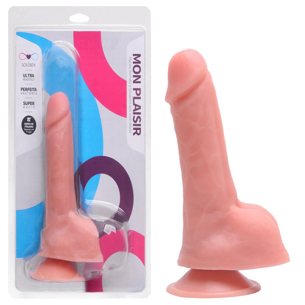 Prótese Maciça Realística Com Ventosa 15,5 X 3,7 cm Soulsex é uma prótese criada especialmente para aumentar seus momentos de prazer, ela foi criada com material polivinílico não tóxico, possui escroto e ventosa.