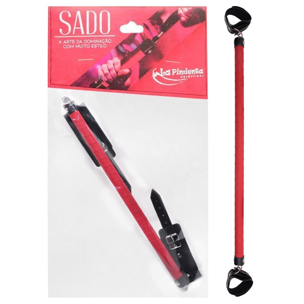 Separador de pernas confeccionado artesanalmente em madeira com revestimento emborrachado na cor preta. Tornozeleiras fixas que acompanham a peça, fabricadas em sintético semelhante à couro e revestimento interno aveludado. Ajustáveis e reguláveis de acordo com suas medidas para garantir conforto, fácil acomodação e uso correto do acessório. Detalhes de fivelas, fecho e travas em metal niquelado que garantem qualidade e durabilidade. Medidas: Comprimento do bastão 50cm Largura das tornozeleiras 5,5cm Comprimento das tornozeleiras 39,5cm Contém 01 Unidade