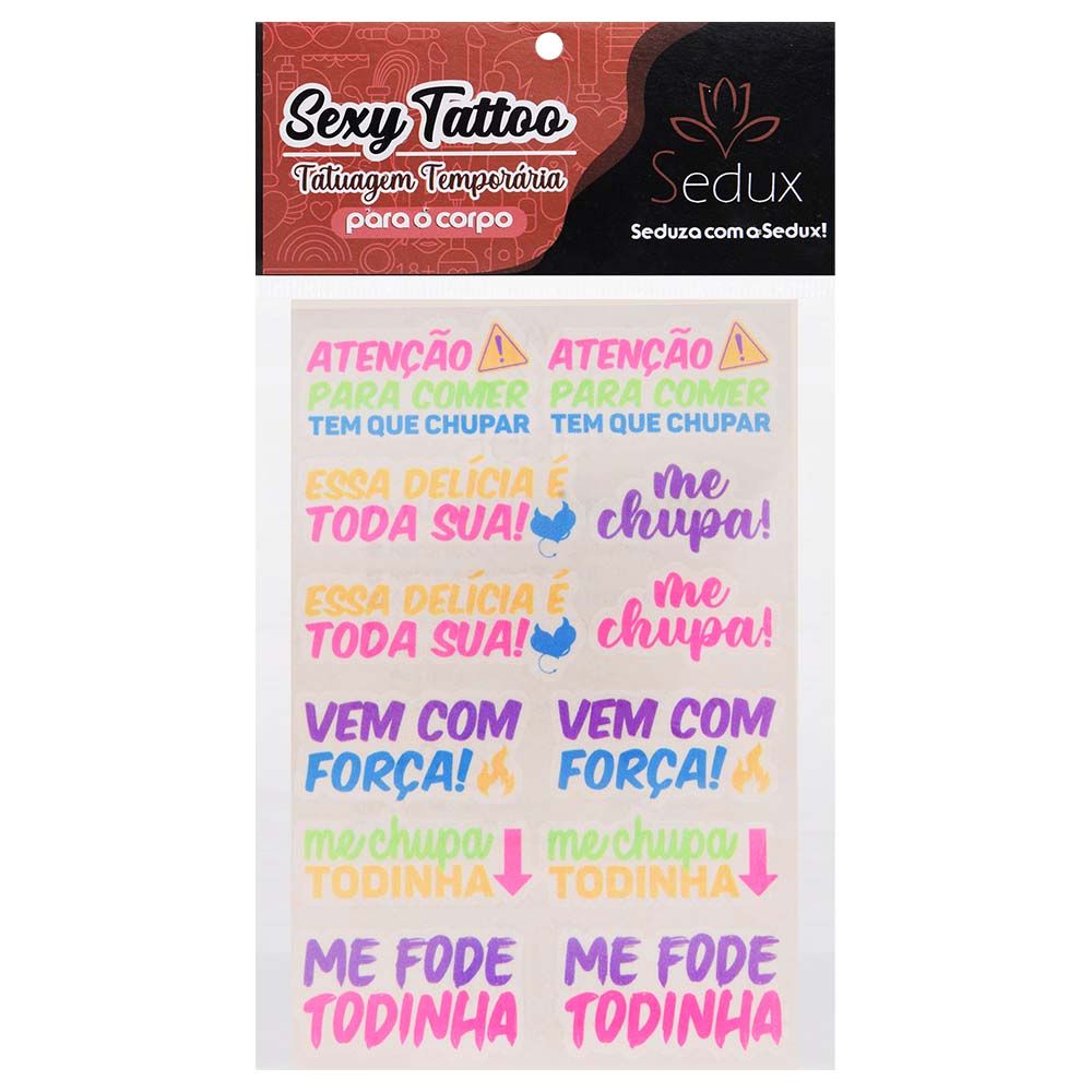 Tem Que Chupar Tatuagem Neon 10 X 15cm Sedux é o novo lançamento da Sedux, é uma tatuagem removível perfeita para esquentar o seu momento de prazer. Cada tatuagem dura em média até dois dias, brilha no escuro, é fácil de remoção e não é tóxica