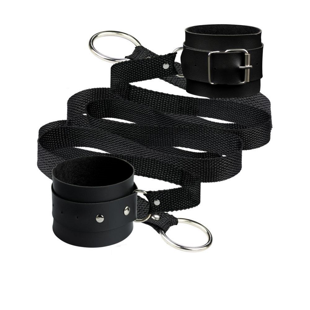 Tornozeleiras com tiras para amarrar confeccionadas em sintético semelhante à couro e revestimento interno aveludado. Ajustáveis e reguláveis de acordo com suas medidas para garantir conforto, fácil acomodação e uso correto do acessório. Tiras para amarrar em poliéster trabalhado e argola de metal que asseguram resistência além de possuírem tamanho ideal para travamento. Detalhes de fivelas, fecho, corrente e travas em niqueladas, confirmam qualidade e durabilidade. Medidas: Largura 5,5cm Comprimento 39,5cm Tiras para amarrar 1,20cm Contém 01 Par de Tornozeleira com tiras