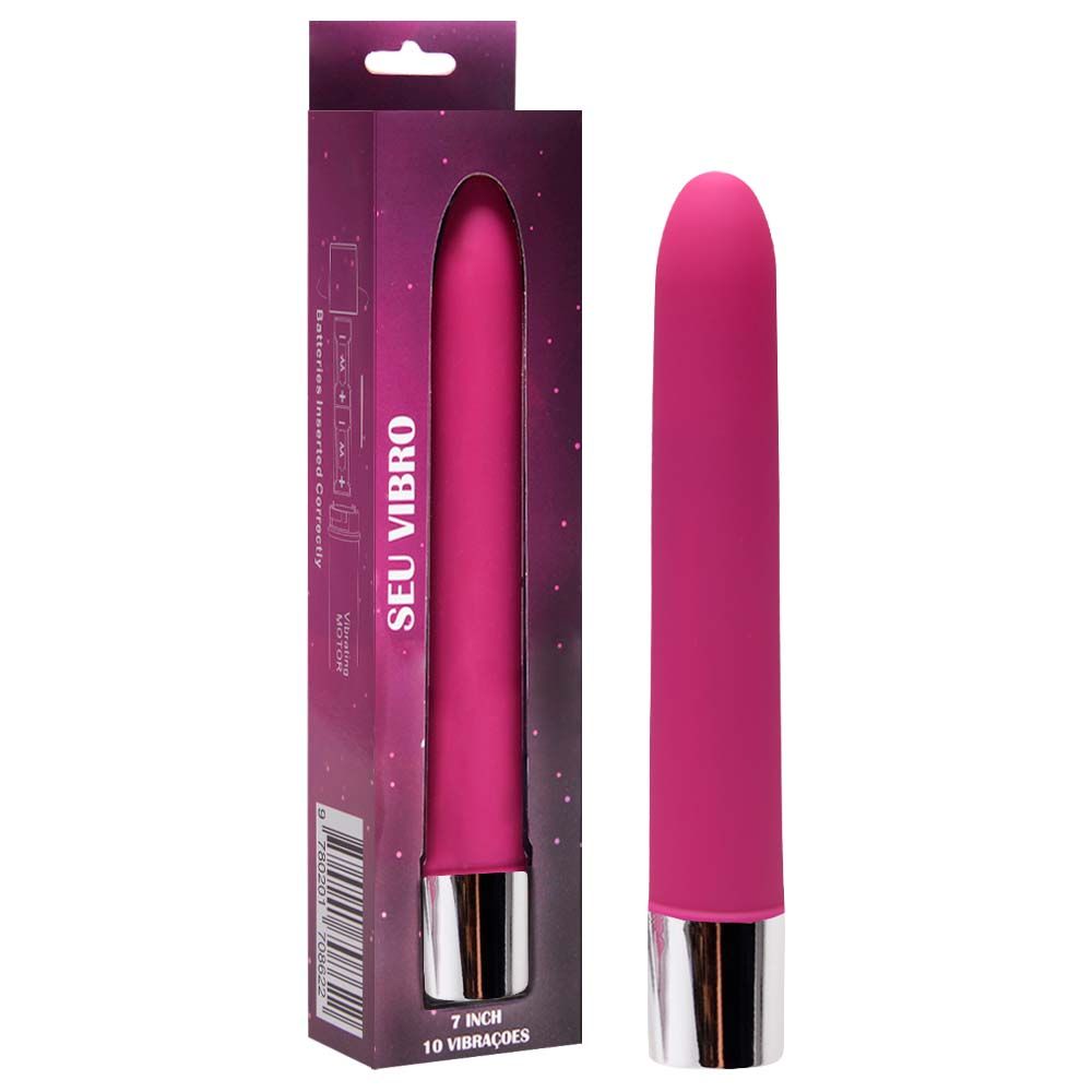 Vibrador personal 17cm. Possui superfície suave a aveludada e um motor com 10 modos de vibração controlado a partir de um botão em sua base. Pode ser usado com capas penianas e como vibrador anal também. Produto mede aproximadamente 17,5 X 2,8cm, sendo penetráveis 16,5cm. Utiliza 2 pilhas AA não inclusas. Cuidados: Limpar com pano úmido, não utilizar lubrificantes ou qualquer produto derivado à base de silicone podendo danificar o produto. Conservar fora da luz solar e não expor a temperatura superior a 50ºC.