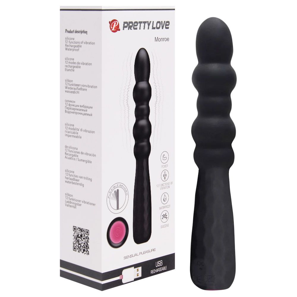 Vibrador Pretty Love Monroe com 12 modos de vibração para você experimentar irresistíveis sensações de muito prazer! Baterias: Carregador USB, cabo incluso Medidas aproximadas: 18,5cm de comprimento e 2,5cm de diâmetro Material: Silicone
