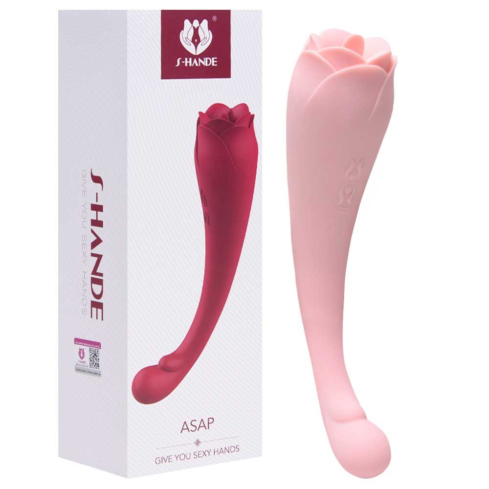 ASAP com formato de Rosa. Vibrador de ponto G e clitóris. Utiliza a vibração como forma de estímulo, fazendo você sentir novas sensações. Com 9 funções de vibração e 9 modos de estimulações da língua. Recarregável e resistente à água! Modo de uso: Lubrificar antes da penetração Tipo de bateria: Recarregável via USB/Tomada Material: Silicone Medidas: 17,6cm de comprimento total e 4,5cm de espessura ponto (medidas aproximadas) Higienização: Guarde na embalagem original. Não compartilhar e não expor a temperatura superior a 50°C