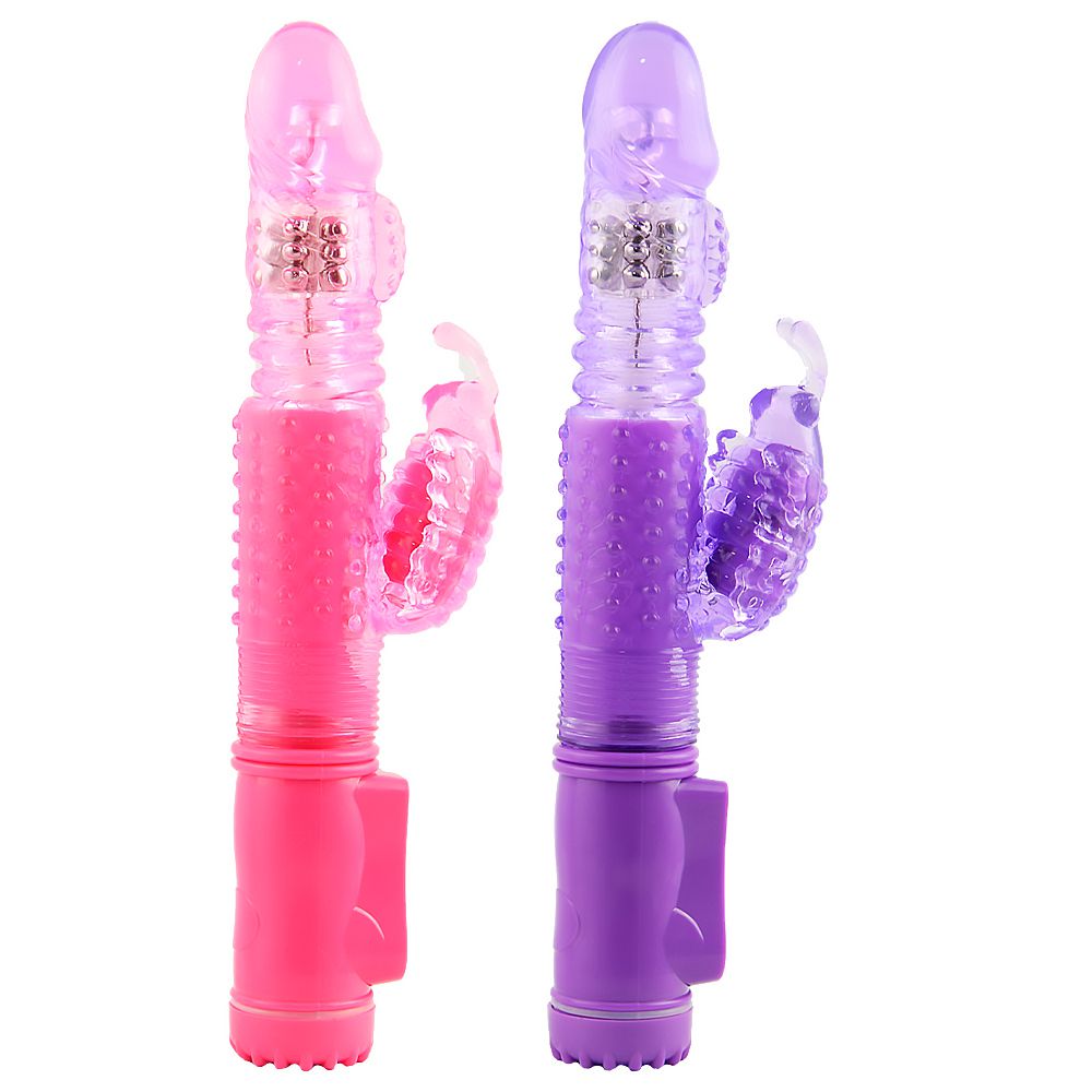 Vibrador Rotativo especial feito em jelly macio com pérolas metálicas internas para estimulação, possui rotação com giro positivo e negativo, estimulador em formato borboleta com vibração, as duas funções podem ser acionadas juntas ou separadamente, tudo regulado por botões na base do vibrador. Possui 36 tipos de vibrações diferentes! Utiliza 4 pilhas AAA não inclusas. Dimensões: 23 x 3,5cm tamanho total, sendo 10 x 3,5cm penetráveis (medidas aproximadas). Cuidados: Lubrificantes sempre a base de água. Conservar fora da luz solar e não expor a temperatura superior a 50ºC. Lavar antes e após o uso com sabão neutro e não compartilhar. Manter fora do alcance das crianças.