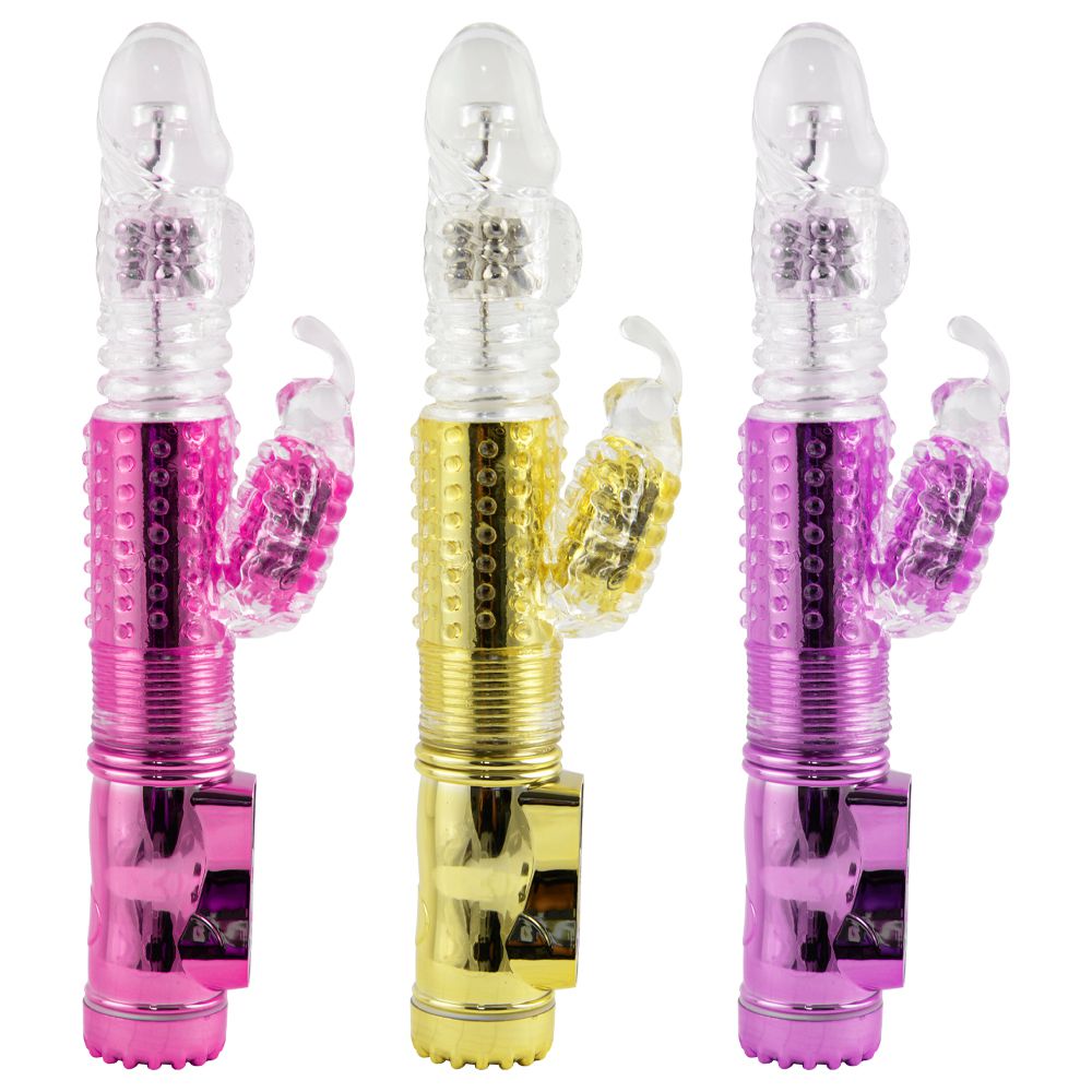 Vibrador rotativo recarregável vai e vem com estimulador clitoriano borboleta, com 36 variações de vibração, 6 velocidades de rotação e botão independente de giro reverso do corpo principal com 3 variações. Controles independentes para o movimento de vai e vem e para vibração do estimulador clitoriano, permitindo o uso de velocidades diferentes em cada estimulador ao mesmo tempo. Produto mede aproximadamente 23 X 3,5cm, sendo penetráveis 11cm! Possui cabo carregador USB! Cuidados: Limpar com pano úmido, não utilizar lubrificantes ou qualquer produto derivado à base de silicone podendo danificar o produto. Conservar fora da luz solar e não expor a temperatura superior a 50ºC.