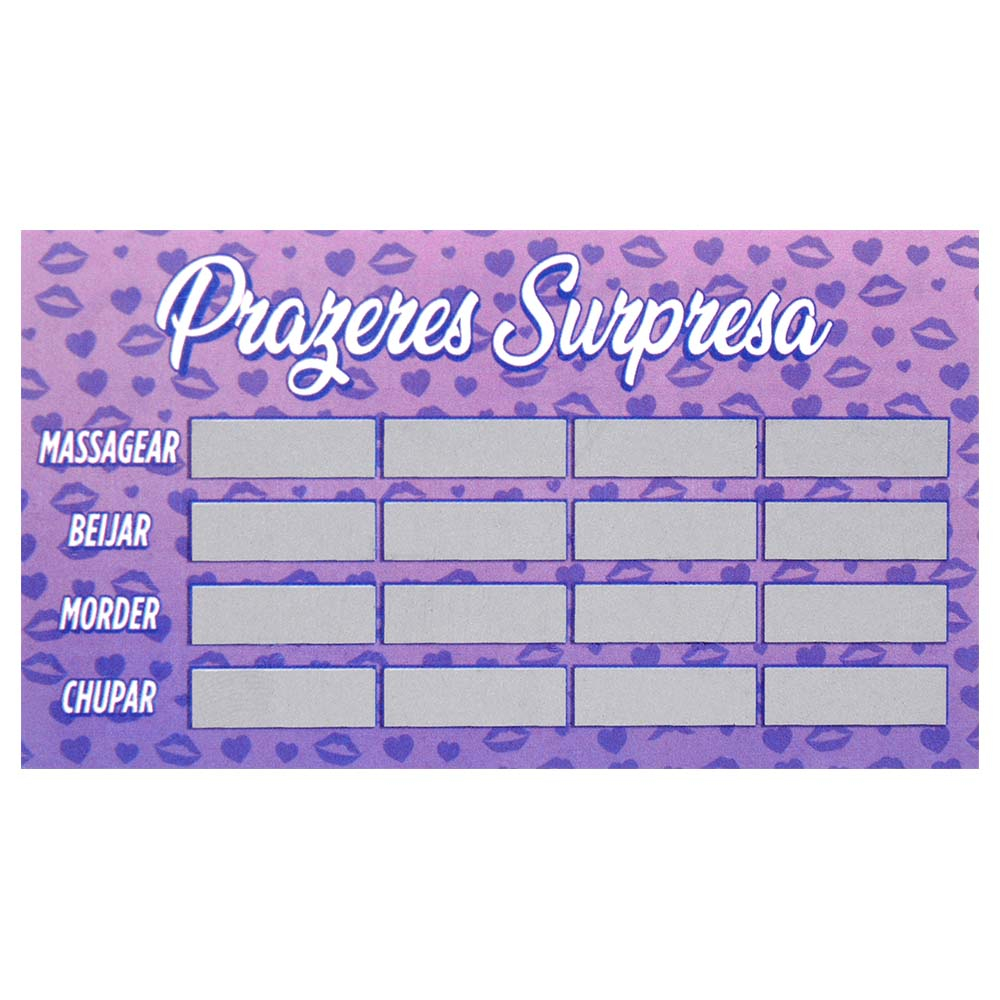 Raspadinha Prazeres Surpresa 10 Unidades da Sensual Love. Transforme seus momentos íntimos em uma experiência divertida e excitante com a Raspadinha Prazeres Surpresa da Sensual Love. Este jogo é perfeito para apimentar sua vida sexual com seu parceiro(a), proporcionando uma maneira lúdica de explorar novas posições e intensificar o prazer. Com 10 unidades em cada embalagem, você terá várias oportunidades para aumentar o prazer e a conexão com seu parceiro(a)!