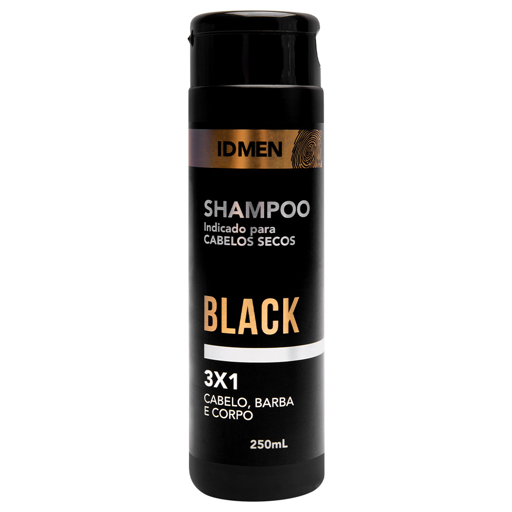 Shampoo 3x1 Macho Black 250ml Idmen: Nutrição e Frescor para Cabelos, Barba e Corpo. O Shampoo 3x1 Macho Black 250ml Idmen é especialmente formulado para homens que buscam praticidade e eficácia em seus cuidados diários. Com nutrientes que penetram na raiz dos cabelos, este shampoo é ideal para cabelos secos, devolvendo vida, brilho e um perfume agradável aos fios. Sua fragrância é um mix de essências amadeiradas e cítricas, proporcionando uma sensação refrescante no couro cabeludo e garantindo uma limpeza eficaz para o cabelo, barba e corpo!